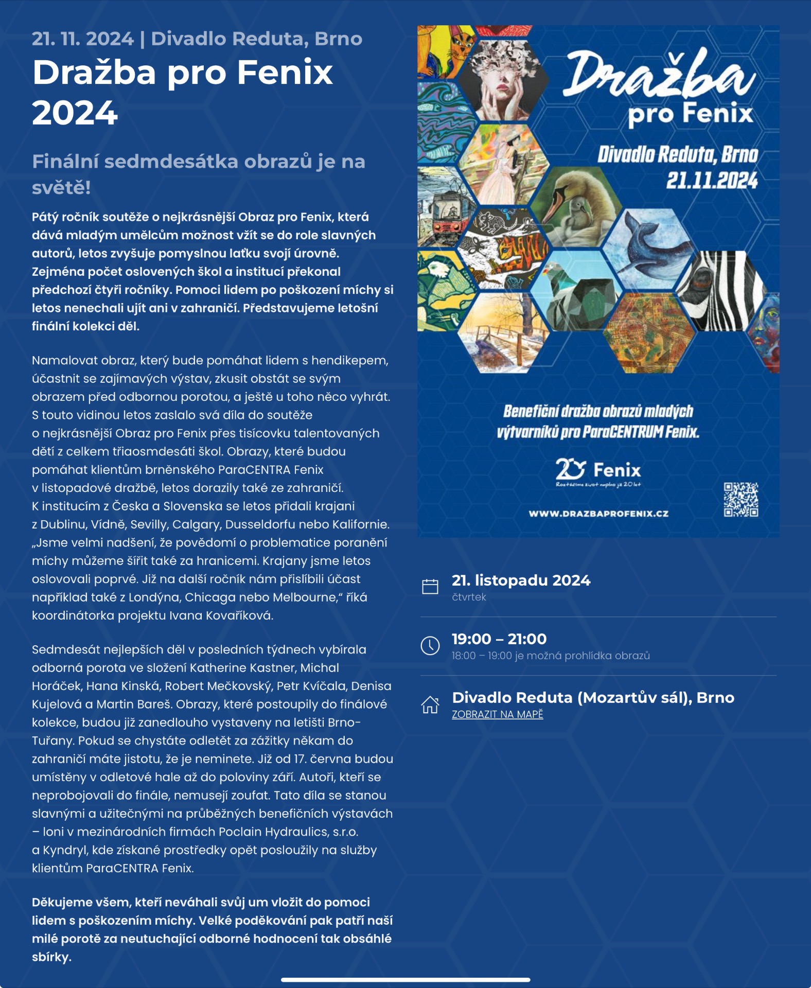 Co je nového? Účast v soutěži O nejkrásnější obraz pro Paracentrum Fénix