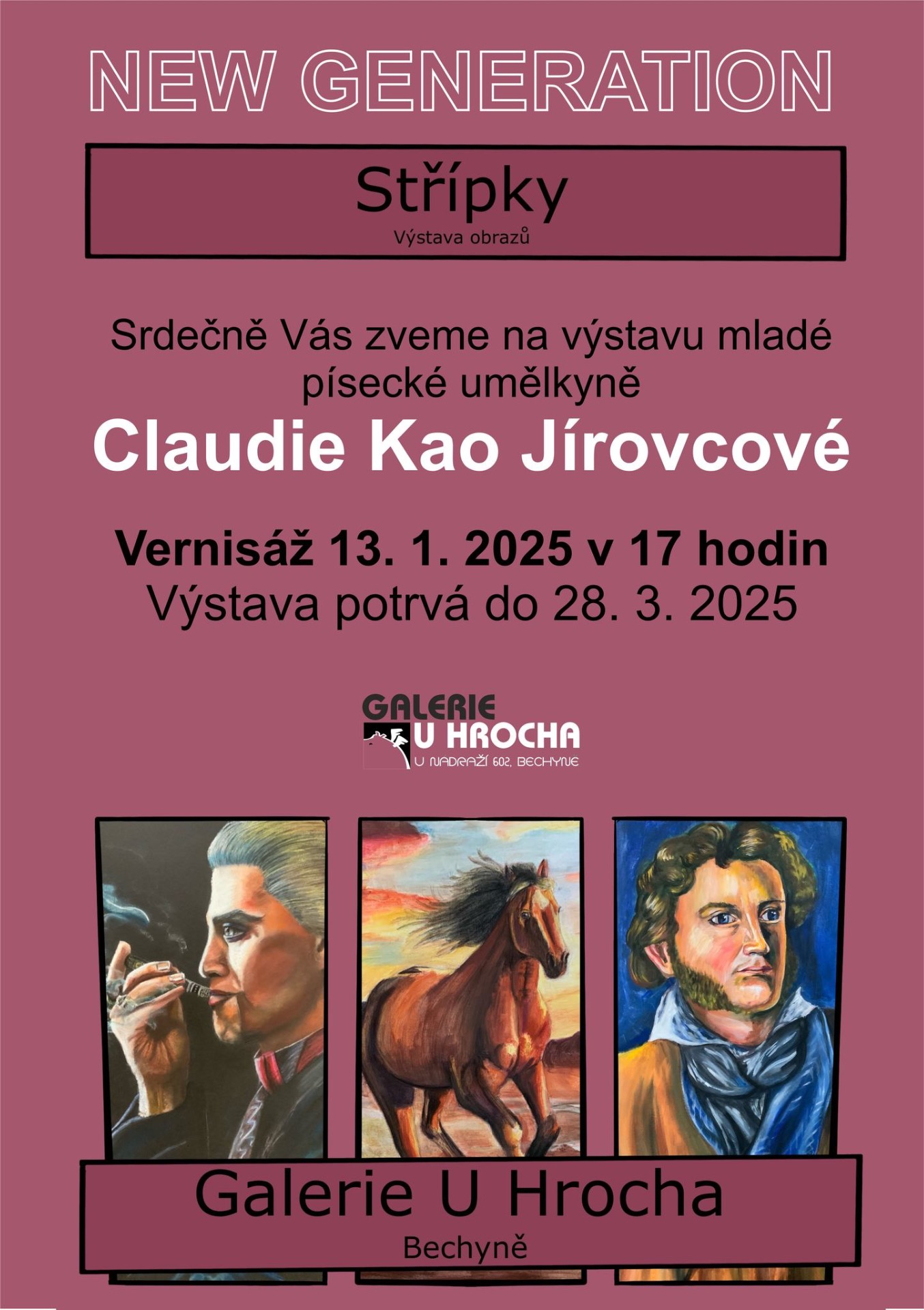 Ale co jsem chtěla říct: Jsem nadšená, že díky mé výstavě minulý rok začali v Galerii vystavovat mladé malíři. Opravdu mladí, náctiletí, nejmladším bylo dokonce deset let… Vystavují pod hlavičkou cyklu New Generation ( taky jsem to měla na plakátku, viz níže) a během roku 2024 proběhly už čtyři takové výstavy. 😃 Jsem šťastná, že jsem odstartovala něco tak skvělého! Málokdo dá šanci začínajícím malířům takzvaně beze jména, natož dětem. Jsem vděčná, že v Bechyni se rozhodli změnit. ❤️
