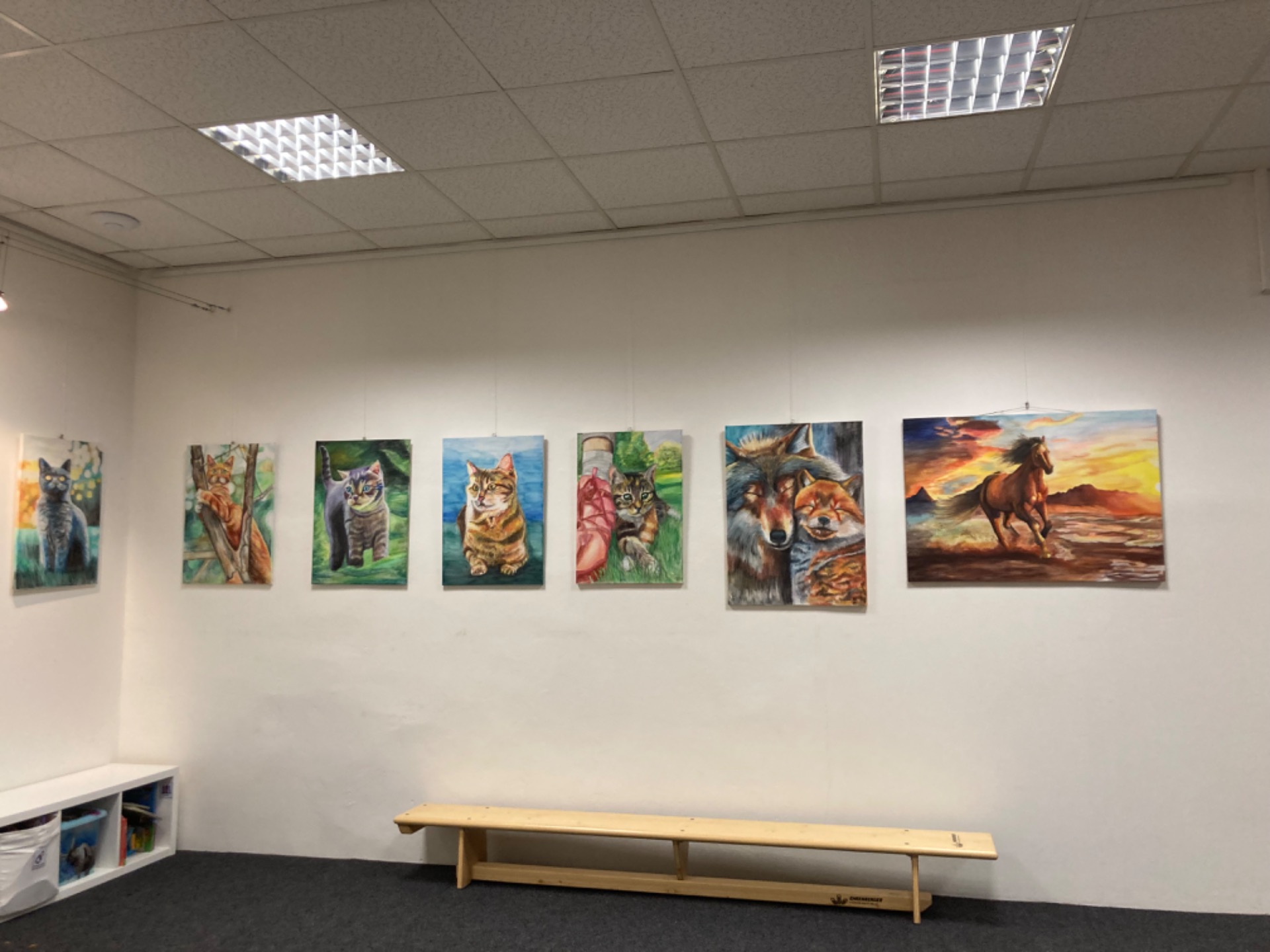 Odpoledne jsme navěsili obrazy a večer byla vernisáž. Všechny překvapilo, že nikdo nepřišel. No dobře, kromě rodiny přišli ještě dva vzdálení příbuzní a dva nepříbuzní. :-)