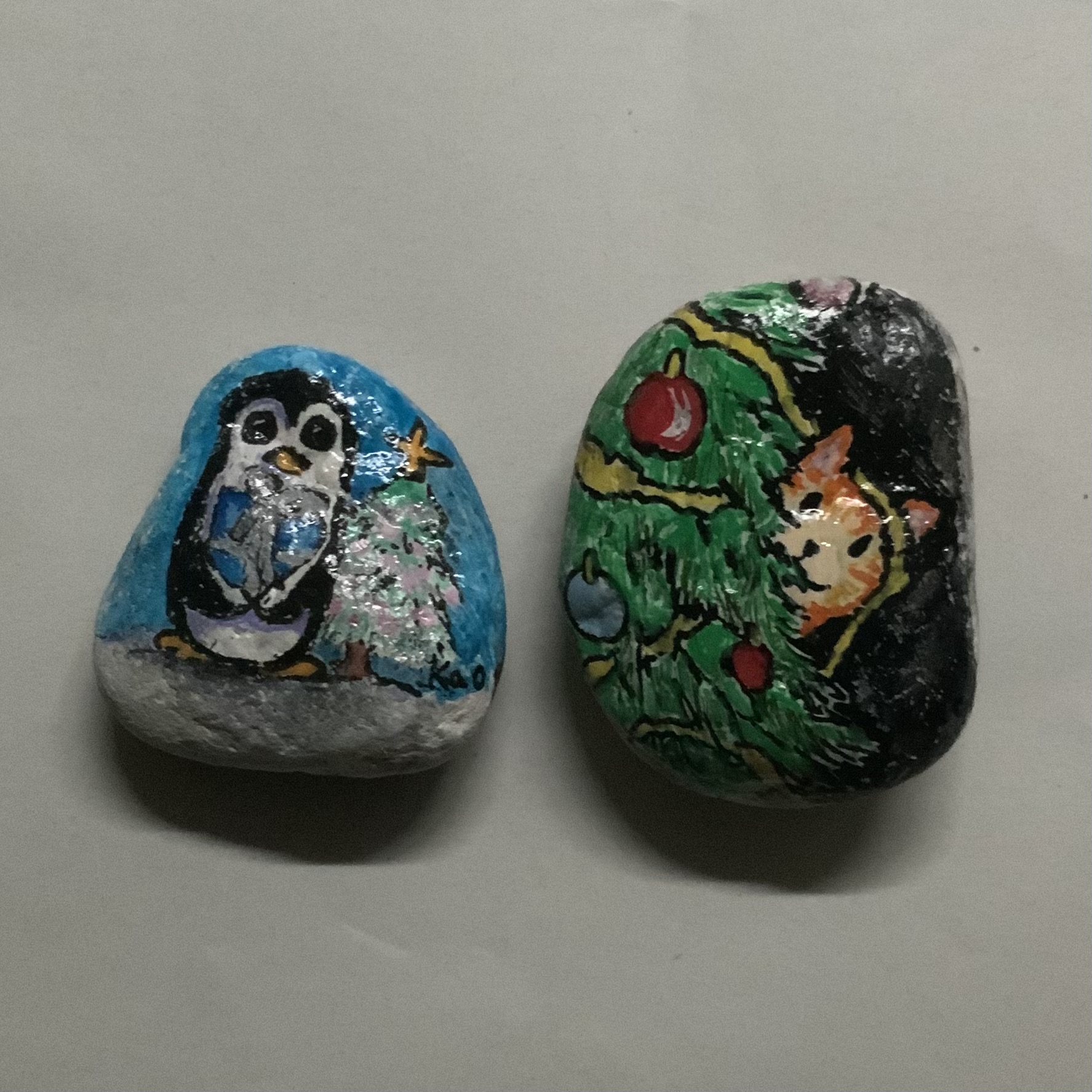 Jinak to bylo s vánočním tvořením chabé. Nebylo třeba dokreslit moc jmenovek, přáníčko je jenom jedno papírové, jedno digitální a až na ty tři pejsky jsem se nevyřádila… I když jo. Ještě jsem si nakreslila dva vánoční kamínky: